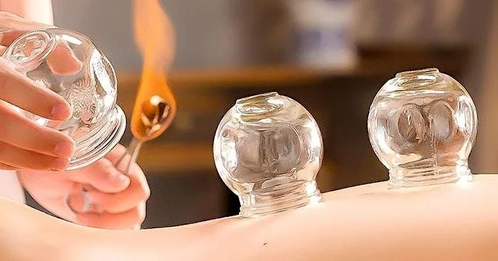 Glass cups applied to the surface of the skin by way of suction for the purpose of promoting blood flow, encouraging cellular repair, micro-vascularization, and for the relief of hypertonicity and pain.